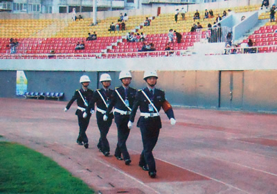 軍事化的管理 統(tǒng)一的服裝、警械配備;嚴(yán)格的警衛(wèi)制度、規(guī)范的軍事訓(xùn)練、統(tǒng)一的內(nèi)勤管理;嚴(yán)謹(jǐn)?shù)难矋彶閸彵O(jiān)督制度、規(guī)范的獎(jiǎng)懲考核制度。形成隊(duì)伍六規(guī)范:軍事訓(xùn)練規(guī)范、內(nèi)務(wù)衛(wèi)生規(guī)范、執(zhí)勤上崗規(guī)范、儀容儀表規(guī)范、文明用語(yǔ)規(guī)范、熱情服務(wù)規(guī)范。